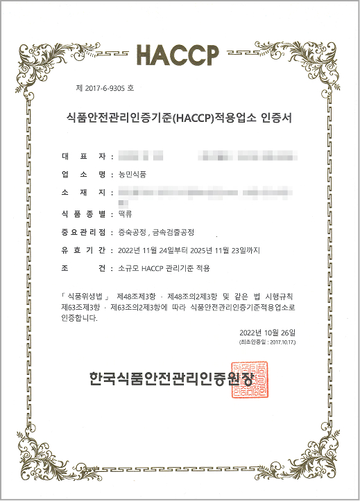HACCP 인증서